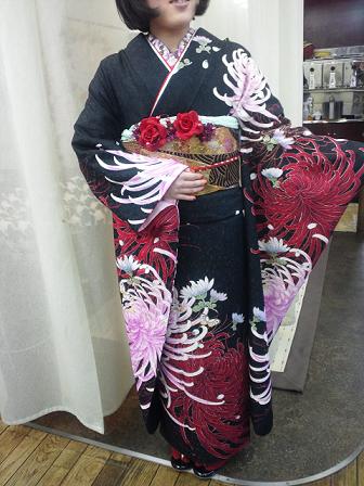 - カールさせた髪に合うように華やかな帯結び『夢の華』